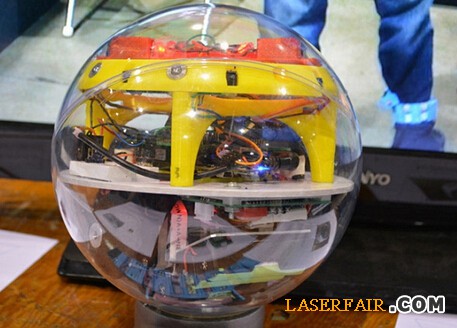 開發(fā)團(tuán)隊的三名成員分別是Hengjiu Kang、Yi Lu和Yunan Song。他們的設(shè)計很巧妙,一個兩輪平衡機器人被裝在一個透明的塑料球里。內(nèi)置的電池為鎮(zhèn)流器、步進(jìn)馬達(dá)提供電力。3D打印的塑料輪負(fù)責(zé)平衡和操縱淘氣球。球的上半部分安裝著大部分的電子元件。