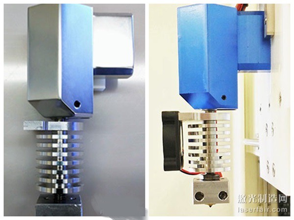 CollideOScope當(dāng)前的版本是專為1.75毫米線徑的線材設(shè)計的,并配置有一個0.3毫米的噴嘴。這種獨特的打印頭是由一整塊鋁合金制成,配有定制的熱端。該鋁制打印頭在不安裝熱端的情況下重量為272克,而另一款使用塑料材料制成的打印頭在不安裝熱端的情況下重量僅有大約50克。