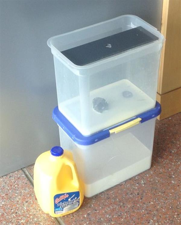 yenfre稱,GotMesh包括兩個大箱子,這兩個箱子摞在一起,上面箱子的底部和下面箱子的蓋子開孔,要掃描的對象放在上面的容器里;然后向箱子里注入足夠的牛奶,使其能夠完全覆蓋對象。隨著牛奶通過中間的孔慢慢地從上層容器漏到下層,被淹沒的掃描對象也逐步地露了出來。