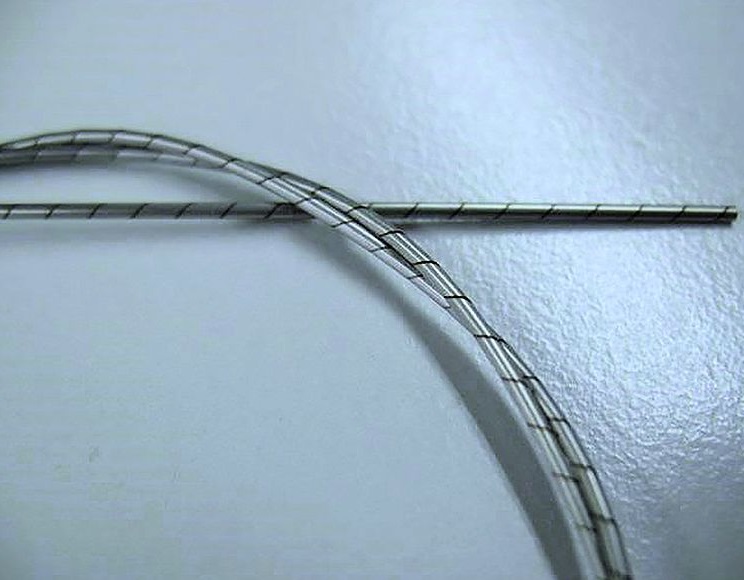 Another possibility to manufacture such a medical device is a tube based guide, called hypotube. In addition to the above described applications, a spiral cutting is necessary to achieve a defined flexibility in certain areas of the device. In addition the tip profiling is done by laser cutting too. For processing coated tubes an ultra-short pulse laser is required to minimize heat affected zones as well as to avoid delaminating of the coating. But also for uncoated tubes, where modulated cw fiber lasers are a common processing tool, an ultrashort pulse laser has numerous advantages regarding heat impact to the device and cleanliness of the cut. A significant reduction in post processing is possible, like the avoidance of an aggressive chemical cleaning. The benefit for the medical device manufacturer is cost reduction and yield improvement.
