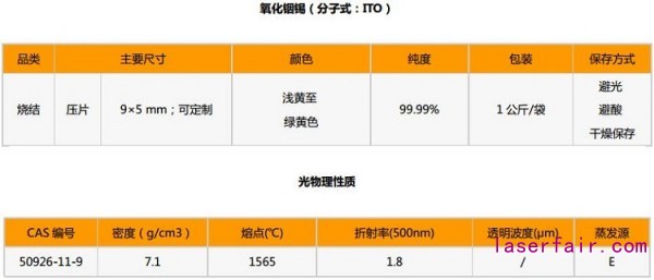 氧化銦錫(ITO)又名摻錫氧化銦。ITO用于光學(xué)鍍膜,最值得注意的有建筑學(xué)中紅外線-反射鍍膜(熱鏡)、汽車、還有鈉蒸汽燈玻璃等。別的應(yīng)用包括氣體傳感器、抗反射膜、和用于VCSEL激光器的布拉格反射器。可以用作透明導(dǎo)電膜,抗靜電膜和日光調(diào)節(jié)膜。