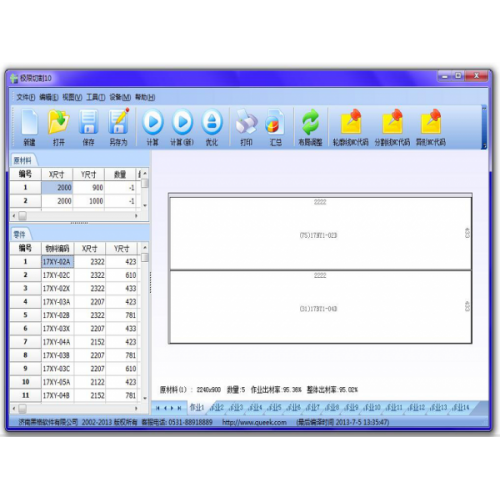5.高性能、高速度開(kāi)料算法,材料利用率、余料