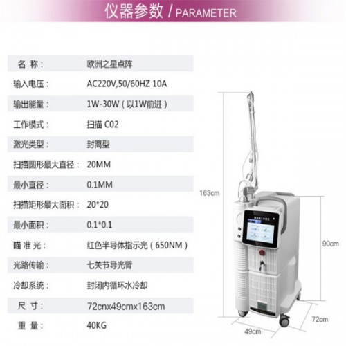 點(diǎn)陣激光采用掃描點(diǎn)陣方式發(fā)射激光,在皮膚、黏膜形成一個(gè)由激光作用點(diǎn)陣和間隔組成的燒灼區(qū),每個(gè)激光作用點(diǎn)由單個(gè)或數(shù)個(gè)高能激光脈沖組成,