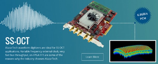 ATS9371擁有支持FFT運算的板載FPGA模塊,數(shù)據(jù)傳輸率可達(dá) 6.8 GB/s。ATS9371是新一代OCT、雷達(dá)、超聲波、光譜和射頻信號記錄等應(yīng)用的理想解決方案。