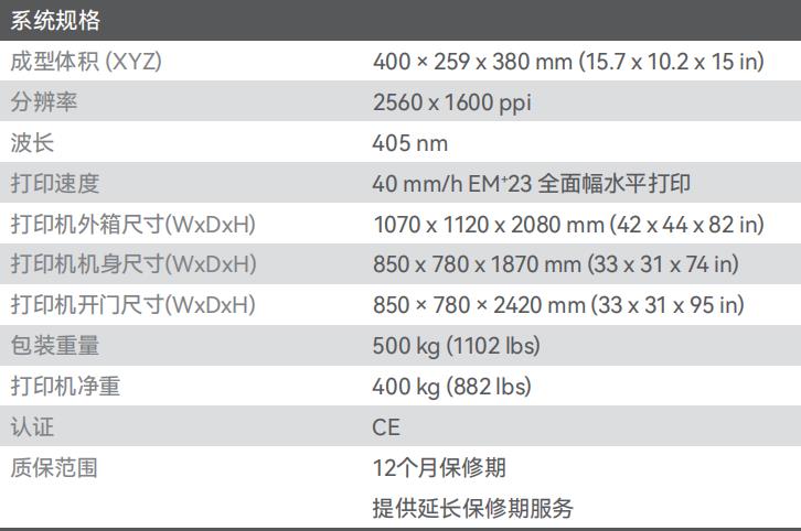 新一代工業(yè)級(jí)DLP光固化3D打印機(jī)Lux 3Li+ 參數(shù)表