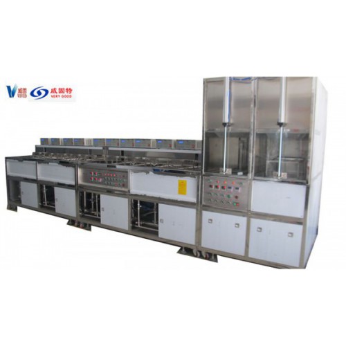 VGT-1207FT為光學(xué)超聲波清洗機(jī),設(shè)備共有12個(gè)功能槽,配置有循環(huán)過濾系統(tǒng)、有機(jī)溶劑蒸餾回收系統(tǒng)、自動(dòng)恒溫系統(tǒng)、拋動(dòng)系統(tǒng)、超聲波清洗系統(tǒng)、抽風(fēng)裝置等組成。設(shè)備采用環(huán)保型有機(jī)溶劑洗滌、水溶劑洗滌、純水漂洗,為環(huán)保型清洗機(jī)。