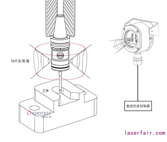 在數(shù)控機(jī)床上用測(cè)頭進(jìn)行測(cè)量時(shí),測(cè)頭實(shí)際上是這種“測(cè)量裝置”(測(cè)頭+機(jī)床)的一部分,它在測(cè)量過(guò)程中承擔(dān)著通過(guò)與工件精確接觸來(lái)確定測(cè)量點(diǎn)的坐標(biāo)、發(fā)出指示信號(hào)、保證測(cè)量結(jié)果精確和測(cè)量操作方便、迅速、安全、可靠的作用。
