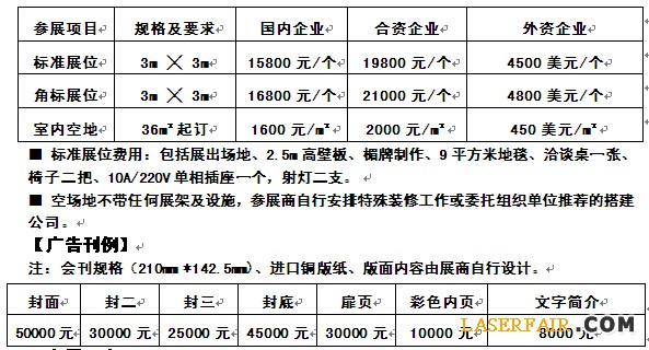 參展項目 規(guī)格及要求 國內企業(yè) 合資企業(yè) 外資企業(yè)