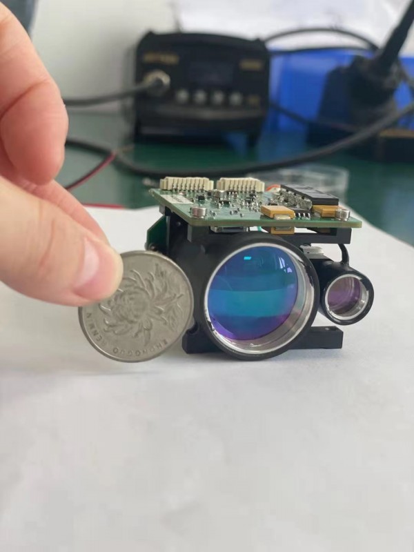 人眼安全微小型測距機作為光電探測系統(tǒng)的核心傳感器,可為系統(tǒng)提供準確的目標距離信息,為系統(tǒng)的任務(wù)執(zhí)行提供先決條件。該型產(chǎn)品是江蘇亮點光電科技有限公司瞄準國內(nèi)小型光電系統(tǒng)需求,分析其共性需求,確定技術(shù)指標、自主立項研制。在技術(shù)指標設(shè)計方面,亮點光電的研發(fā)團隊突破了微型抗失諧精密光機一體化設(shè)計、微小型收發(fā)光學(xué)設(shè)計、高靈敏度接收、精密光機裝調(diào)等關(guān)鍵技術(shù),并加速樣機迭代優(yōu)化,實現(xiàn)了產(chǎn)品的成功研制。