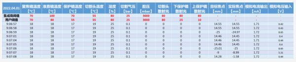 3. 保護(hù)鏡異常污染報(bào)警 鑒于溫升的速度問題,我們還提供了反應(yīng)更靈敏的鏡片污染檢測。當(dāng)鏡片污染數(shù)值異常升高時(shí),對(duì)加工過程及時(shí)預(yù)警或進(jìn)行干預(yù)。 圖3 切割頭鏡片污染報(bào)警圖標(biāo) 切割氣壓監(jiān)控及預(yù)警 普雷茨特切割頭氣壓傳感器能實(shí)時(shí)監(jiān)測切割時(shí)的氣壓值??蛻艨筛鶕?jù)獲取的數(shù)值生成切割氣壓曲線圖,來輔助分析切割不良是否是由于氣壓變化的影響。同時(shí),當(dāng)無氣壓或氣壓太低時(shí)(氣壓太低鏡片會(huì)有炸裂風(fēng)險(xiǎn)),可預(yù)設(shè)報(bào)警機(jī)制來保證切割安全。 圖4 氣壓監(jiān)控示例 4.焦點(diǎn)動(dòng)態(tài)補(bǔ)償 切割時(shí),尤其是高功率切割時(shí),焦點(diǎn)位置會(huì)隨著鏡片溫升造成的熱透鏡效應(yīng)而產(chǎn)生變化,導(dǎo)致實(shí)際切割焦點(diǎn)位置向上飄移,從而影響切割質(zhì)量的穩(wěn)定。通過對(duì)鏡片溫度的實(shí)時(shí)監(jiān)測,在一定時(shí)間段內(nèi)進(jìn)而對(duì)焦點(diǎn)進(jìn)行補(bǔ)償來保證切割質(zhì)量的一致性。 5.隨動(dòng)高度傳感器標(biāo)定曲線實(shí)際應(yīng)用 普雷茨特隨動(dòng)高度傳感器可提供8條標(biāo)定曲線以滿足不同切割工藝需求。通過不同的標(biāo)定曲線可兼顧大距離檢測范圍和小距離檢測精度要求。穿孔或空跑時(shí)利用大距離范圍檢測實(shí)現(xiàn)工藝及安全需求;切割時(shí)利用小距離高精度檢測,來保證切割中噴嘴隨動(dòng)高度穩(wěn)定。例如坡口切割時(shí),不同切割角度范圍就可以選擇不同的標(biāo)定曲線。 6.切割頭日志文件記錄及分析 切割頭內(nèi)部的所有監(jiān)控?cái)?shù)據(jù),可作為工作日志文件導(dǎo)出。當(dāng)切割頭出現(xiàn)問題時(shí),可參考日志文件對(duì)切割頭各個(gè)參數(shù)進(jìn)行排查。不僅方便用戶追溯之前的切割狀態(tài),還能更好的了解切割時(shí)數(shù)據(jù)和切割質(zhì)量之間的關(guān)系。 圖5切割頭日志文件 結(jié)尾 普雷茨特切割頭一直是激光切割行業(yè)內(nèi)高端智能切割頭的代名詞,以智能、穩(wěn)定、高效的產(chǎn)品優(yōu)勢(shì)被市場所認(rèn)可。普雷茨特作為一家為高功率激光切割關(guān)鍵組件配套的領(lǐng)導(dǎo)者,一直以客戶的需求為導(dǎo)向。我們?yōu)榭蛻籼峁┳顑?yōu)質(zhì)的光學(xué)組件以引領(lǐng)市場上最高功率的切割;不斷優(yōu)化升級(jí)的的傳感器為實(shí)現(xiàn)真正的智能切割提供了數(shù)據(jù)的源頭。高功率加上實(shí)時(shí)監(jiān)控的數(shù)據(jù)賦能激光切割設(shè)備的智能化,助力智能裝備制造的產(chǎn)業(yè)之路。