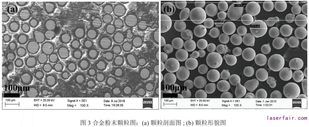 要嚴格篩選合金粉末。據(jù)悉,合金粉末制備的關鍵在于顆粒度的均勻性,如若顆粒度不均勻,大、小顆粒度之間即存在相互脫碳、應力分布不均等情況,極易導致熔覆開裂等缺陷的形成,且嚴重 影響送粉、熔凝過程。如圖 3 為本實驗選用的合 金粉末粒度情況,可見粉末顆粒呈圓形分布,球型顆粒度較為均勻光滑,球形度較高,粒度直徑約為 63.6μm ~139.6μm。粒度均勻且球形度高的 合金粉末具備高流動性,可以有效保障熔覆送粉 的流暢均勻,有助于降低熔覆缺陷的產(chǎn)生機率。