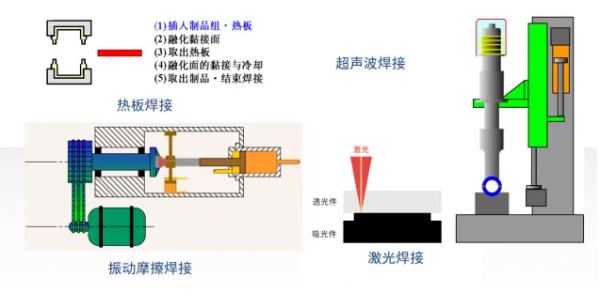 (4)激光焊接——激光焊接技術是借助激光束產生的熱量使塑料接觸面熔化,進而將熱塑性片材、薄膜或模塑零部件粘結在一起的技術。
