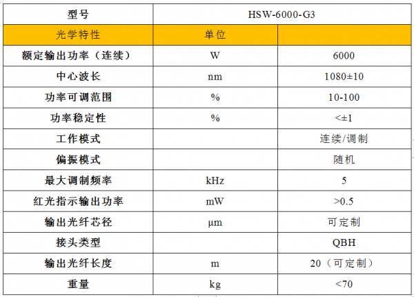 表2.1 大族光子6000W激光器技術(shù)參數(shù)