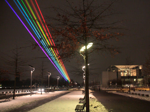 夢幻激光:剛開始時,激光的色彩是相當(dāng)有限的:氦氖激光器和紅寶石發(fā)出紅光,其他激光器則產(chǎn)生不可見的紅外光。第一次實現(xiàn)七彩激光的是離子激光器,它通過在氬或氪中的高壓放電產(chǎn)生激光。氬氣產(chǎn)生藍(lán)色和綠色的光,氪產(chǎn)生其他幾種顏色,兩種氣體的混合可以產(chǎn)生整個可見光譜中的顏色。激光秀從此誕生。