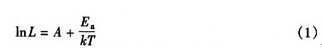 試驗中規(guī)定相對功率下降30%為激光器失效時間。40℃下的中位壽命為3 000 h;80℃下的中位壽命為330 h。器件失效從根本上講都是基本的物理化學(xué)過程,而溫度對于許多物理化學(xué)過程來講都是一個重要因素,溫度升高以后,這些變化過程大大加快,器件失效過程被加速,試驗總結(jié)出來阿列尼烏斯(Arrhenius)經(jīng)驗公式