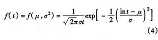 一般地,半導(dǎo)體激光器的壽命符合對數(shù)正態(tài)分布,對數(shù)正態(tài)分布的故障概率密度函數(shù)為