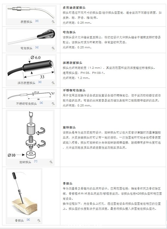 通過(guò)各種各樣的探頭,可連續(xù)監(jiān)測(cè)幾乎所有組織/器官的表面或深層血流;其特點(diǎn)為:(1)單點(diǎn)監(jiān)測(cè);(2)連續(xù)動(dòng)態(tài)監(jiān)測(cè)。
