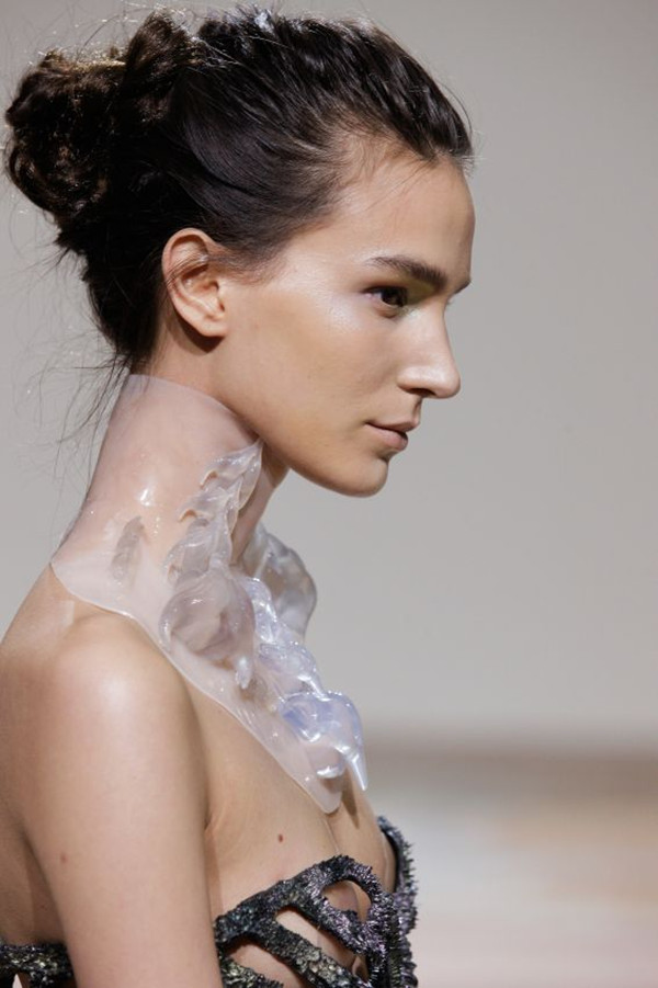 圖四:模特脖子上的“項鏈”一看就是出自3D打印的手筆。