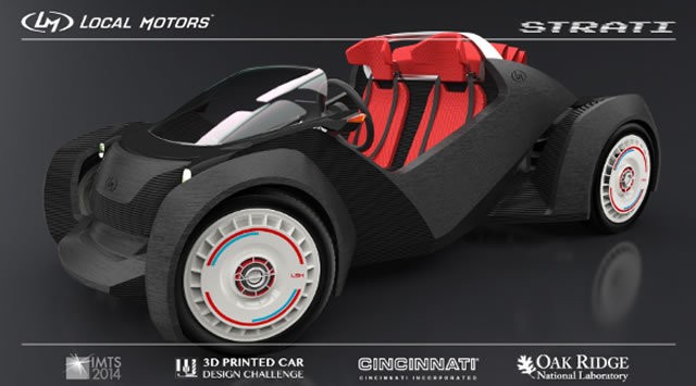 9月7日,Local Motors在美國芝加哥舉行的2014國際制造技術(shù)展覽會(以下簡稱IMTS)上展出了3D打印的一輛汽車,據(jù)悉,車體在展會結(jié)束的最后一天完成。