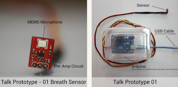 TALK 的大小類似于常規(guī)的智能手機(jī),便于攜帶。它用一個(gè)小型的3D打印外殼內(nèi)部安裝小電路板、電池以及揚(yáng)聲器。還有一部分延伸至鼻子附近,以記錄用戶的呼氣。遺憾的是,Dilbago沒有透露他使用的3D打印機(jī)和材料的任何信息。Dilbago估計(jì),TALK 商品化生產(chǎn)后價(jià)格僅為100美元,將成為市場(chǎng)上價(jià)格最實(shí)惠的AAC設(shè)備。