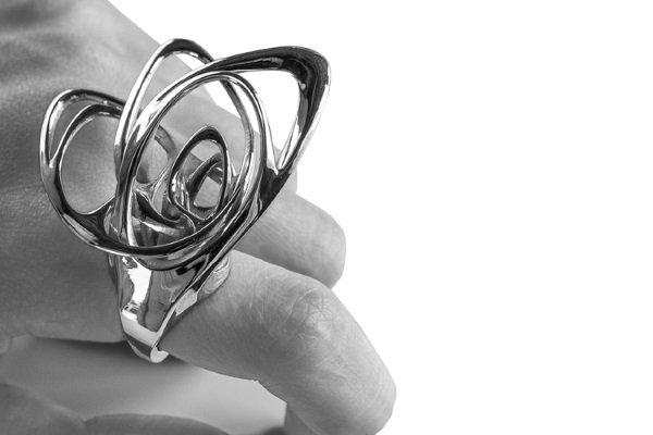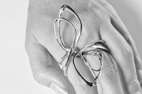 Wu還與Stratasys的子公司Solidscape合作制造了Papilio(鳳蝶)指環(huán),猛一看去,這個指環(huán)猶如蝴蝶張開翅膀,展翅欲飛。據(jù)天工社了解,Wu先是使用Solidscape MAX²3D打印機打印出Papilio的蠟?zāi)?,然后再用純銀以失蠟法鑄造出來,完成后手工打磨出光澤。3D打印的Papilio指環(huán)售價為1000美元。