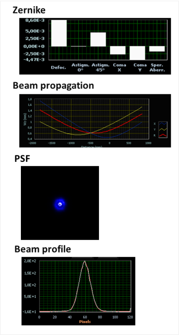 可以實時測量強度相位(2D/3D)信息,Zernike/Legendre系數(shù),遠場,光束參數(shù),光束形狀M2等。
