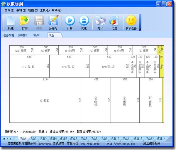 5.高性能、高速度開(kāi)料算法,材料利用率、余料