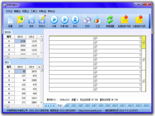 5.高性能、高速度開(kāi)料算法,材料利用率、余料
