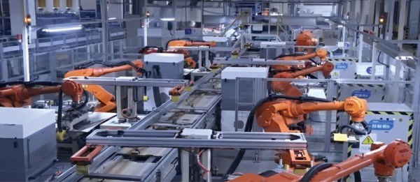 能根據(jù)生產(chǎn)訂單信息,自動從金屬原材料庫叉取板材,并按所需形狀在沖壓中心進行加工。加工完,經(jīng)過翻轉(zhuǎn)平臺輸送到折彎中心進行折彎成型、鉚接固定與螺母拉鉚,然后開始加強筋自動鉚接固定安裝,固定后再輸送到自動裝配系統(tǒng)安裝,安裝完畢便對產(chǎn)品進行包裝與粘貼標識,同時將產(chǎn)品分流堆疊,最后到達周轉(zhuǎn)區(qū)。