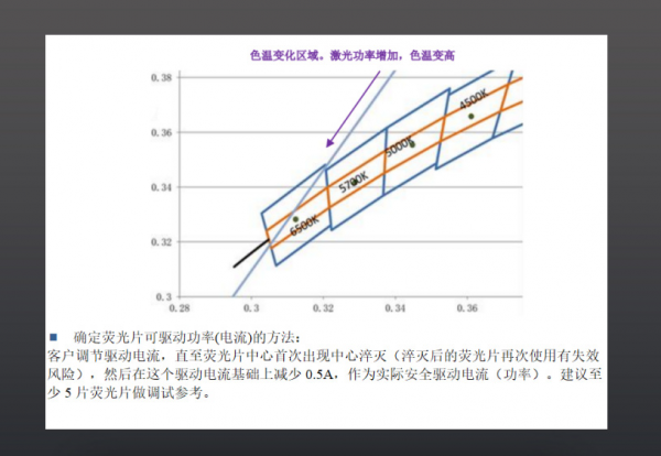 確定熒光片可驅(qū)動(dòng)功率(電流)的方法:
