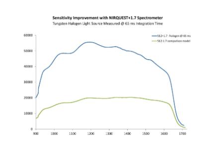 與類似光譜儀相比,NIRQuest+-1.7 (900-1700 nm)的靈敏度有所提高