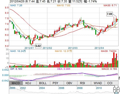今 開: 7.44 成交量: 115196手 振 幅: 3.21% 最 高: 7.45 成交額: 8454.00萬 換手率: 2.64% 最 低: 7.21 總市值: 32.10億 市凈率: 2.37 昨 收: 7.48 流通市值...