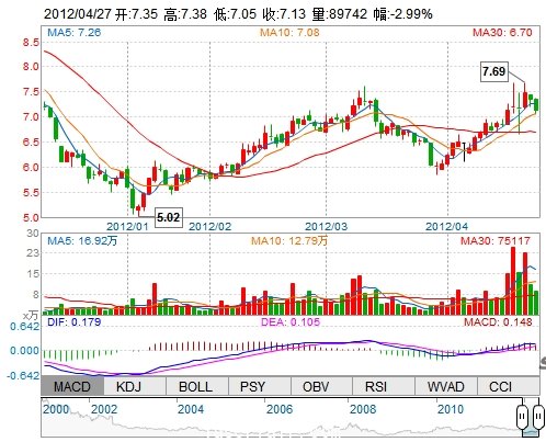 今 開: 7.35 成交量: 89741手 振 幅: 4.49% 最 高: 7.38 成交額: 6415.23萬 換手率: 2.05% 最 低: 7.05 總市值: 31.14億 市凈率: 2.29 昨 收: 7.35 流通市值...