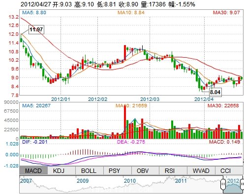 今 開(kāi): 9.03 成交量: 17385手 振 幅: 3.21% 最 高: 9.10 成交額: 1556.02萬(wàn) 換手率: 0.90% 最 低: 8.81 總市值: 17.73億 市凈率: 3.68 昨 收: 9.04 流通市值...