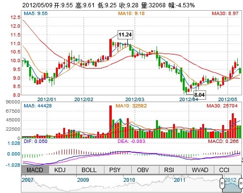 最 高: 9.61 成交額: 3008.23萬(wàn) 換手率: 1.65%
