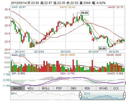 今 開: 22.96 成交量: 2068手 振 幅: 2.74% 最 高: 22.97 成交額: 468.70萬 換手率: 2.30% 最 低: 22.35 總市值: 7.88億 市凈率: 2.83 昨 收: 22.66 流通市值...