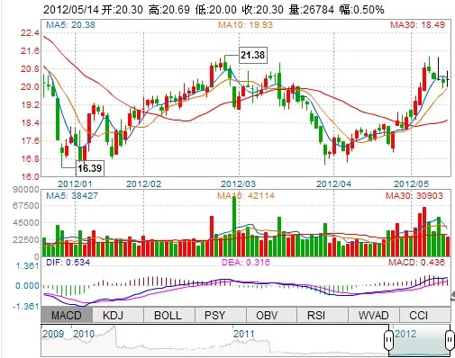 今 開: 20.30 成交量: 26784手 振 幅: 3.42% 最 高: 20.69 成交額: 5452.35萬 換手率: 1.31% 最 低: 20.00 總市值: 60.42億 市凈率: 4.98 昨 收: 20.20 流通...