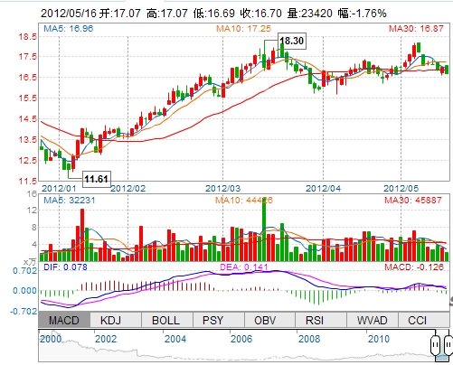 今 開: 17.07 成交量: 23420手 振 幅: 2.24% 最 高: 17.07 成交額: 3952.11萬 換手率: 0.57% 最 低: 16.69 總市值: 74.41億 市凈率: 2.82 昨 收: 17.00 流通...