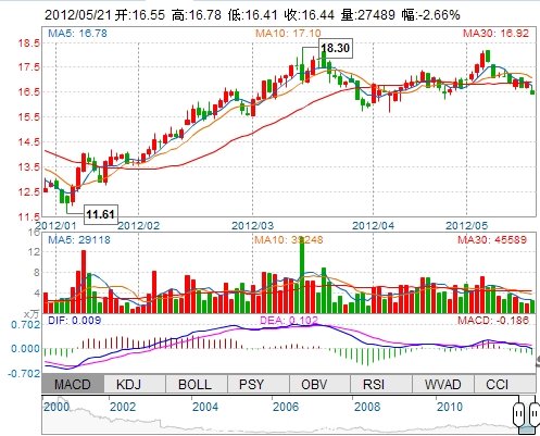 今 開: 16.55 成交量: 27489手 振 幅: 2.19% 最 高: 16.78 成交額: 4550.78萬 換手率: 0.67% 最 低: 16.41 總市值: 73.25億 市凈率: 2.78 昨 收: 16.89 流通...