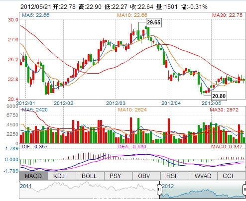 今 開: 22.78 成交量: 1500手 振 幅: 2.77% 最 高: 22.90 成交額: 338.61萬 換手率: 1.67% 最 低: 22.27 總市值: 7.92億 市凈率: 2.85 昨 收: 22.71 流通市值...