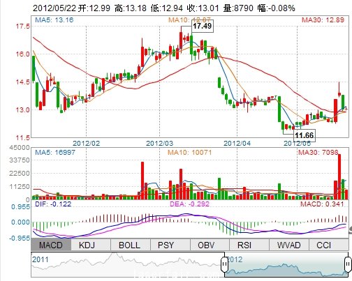 今 開(kāi): | 12.99 | 成交量: | 8790手 | 振 幅: | 1.84% |