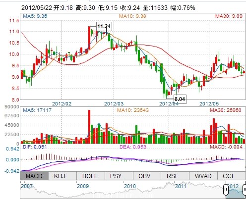 今 開: 9.18 成交量: 11633手 振 幅: 1.64% 最 高: 9.30 成交額: 1073.27萬 換手率: 0.60% 最 低: 9.15 總市值: 18.41億 市凈率: 3.82 昨 收: 9.17 流通市值...