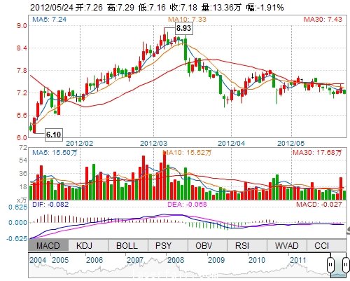今 開: 7.26 成交量: 133567手 振 幅: 1.78% 最 高: 7.29 成交額: 9650.10萬(wàn) 換手率: 1.41% 最 低: 7.16 總市值: 74.99億 市凈率: 2.52 昨 收: 7.32 流通市值...