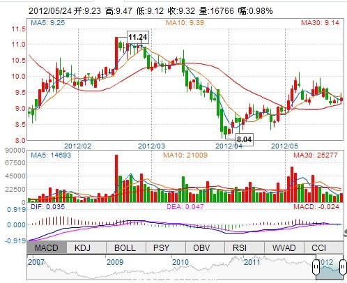 今 開: 9.23 成交量: 16765手 振 幅: 3.79% 最 高: 9.47 成交額: 1559.90萬 換手率: 0.86% 最 低: 9.12 總市值: 18.57億 市凈率: 3.85 昨 收: 9.23 流通市值...