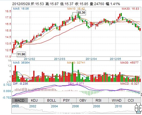 今 開: 15.53 成交量: 24759手 振 幅: 3.20% 最 高: 15.87 成交額: 3878.39萬 換手率: 0.61% 最 低: 15.37 總市值: 70.62億 市凈率: 2.68 昨 收: 15.63 流通...