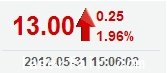 今 開: | 12.69 | 成交量: | 11494手 | 振 幅: | 6.04% |