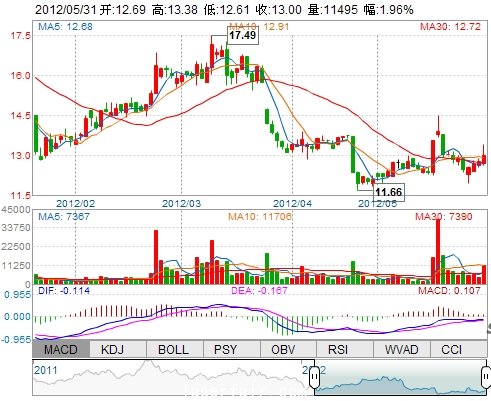 今 開: 12.69 成交量: 11494手 振 幅: 6.04% 最 高: 13.38 成交額: 1496.92萬 換手率: 6.76% 最 低: 12.61 總市值: 8.71億 市凈率: 2.80 昨 收: 12.75 流通市...