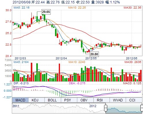 | 今 開: | 22.44 | 成交量: | 3928手 | 振 幅: | 2.74% |
