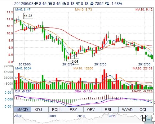 | 今 開: | 8.45 | 成交量: | 7892手 | 振 幅: | 3.25% |
