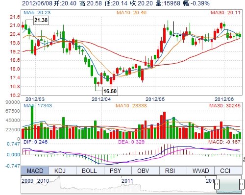 今 開(kāi): 20.40 成交量: 15967手 振 幅: 2.17% 最 高: 20.58 成交額: 3252.11萬(wàn) 換手率: 0.78% 最 低: 20.14 總市值: 60.13億 市凈率: 4.95 昨 收: 20.28 流通...